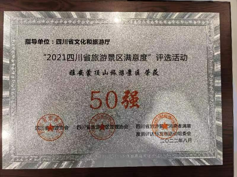 蒙頂山景區(qū)榮獲 “2021四川省旅游景區(qū)滿意度”50強